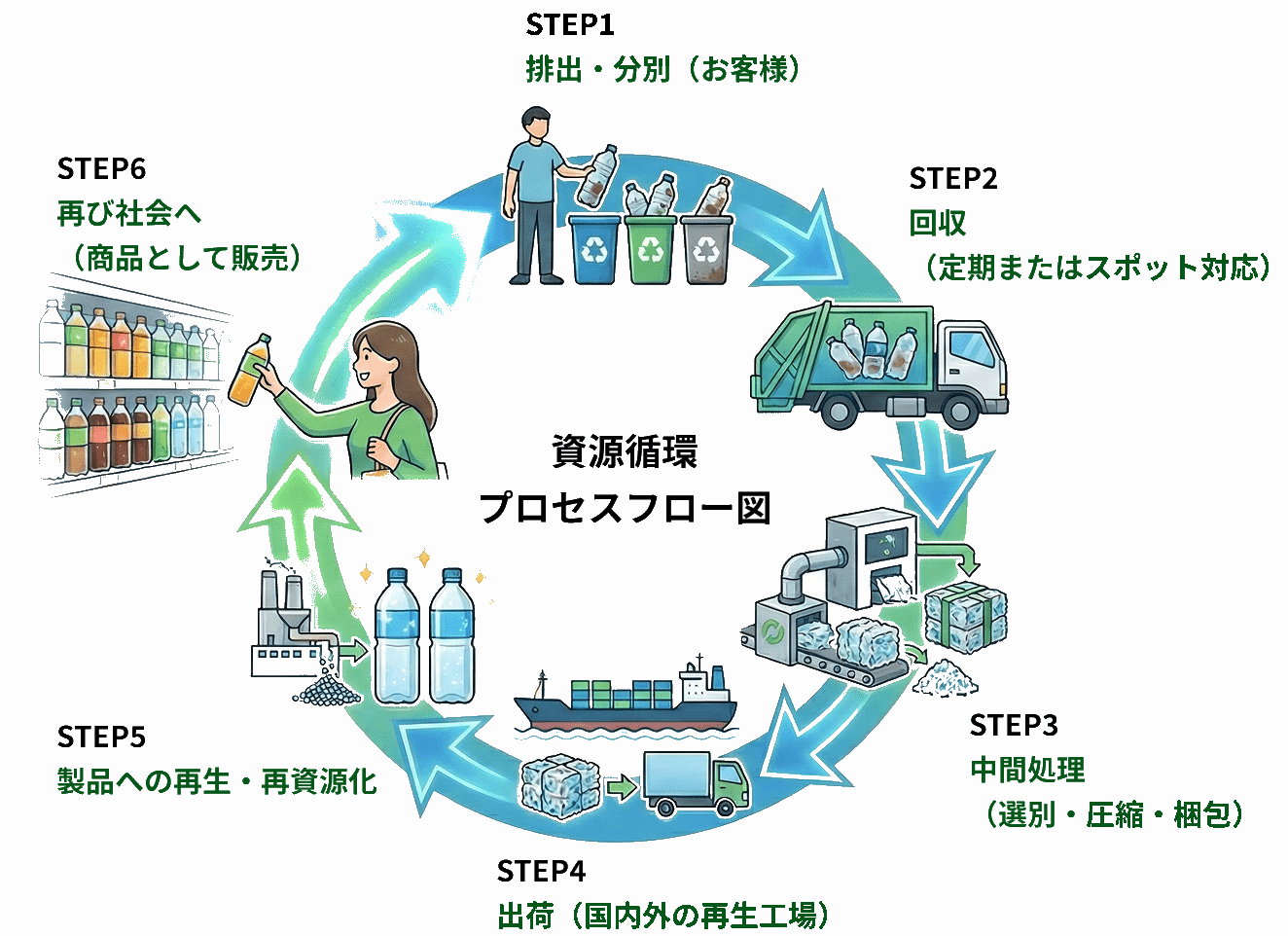 回収から再資源化、処理まで、全体を見ながら対応を組み立てられることが、共益商会グループの強みです。