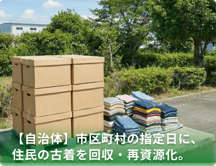 地方自治体が指定する日に、地域住民からの古着を回収。